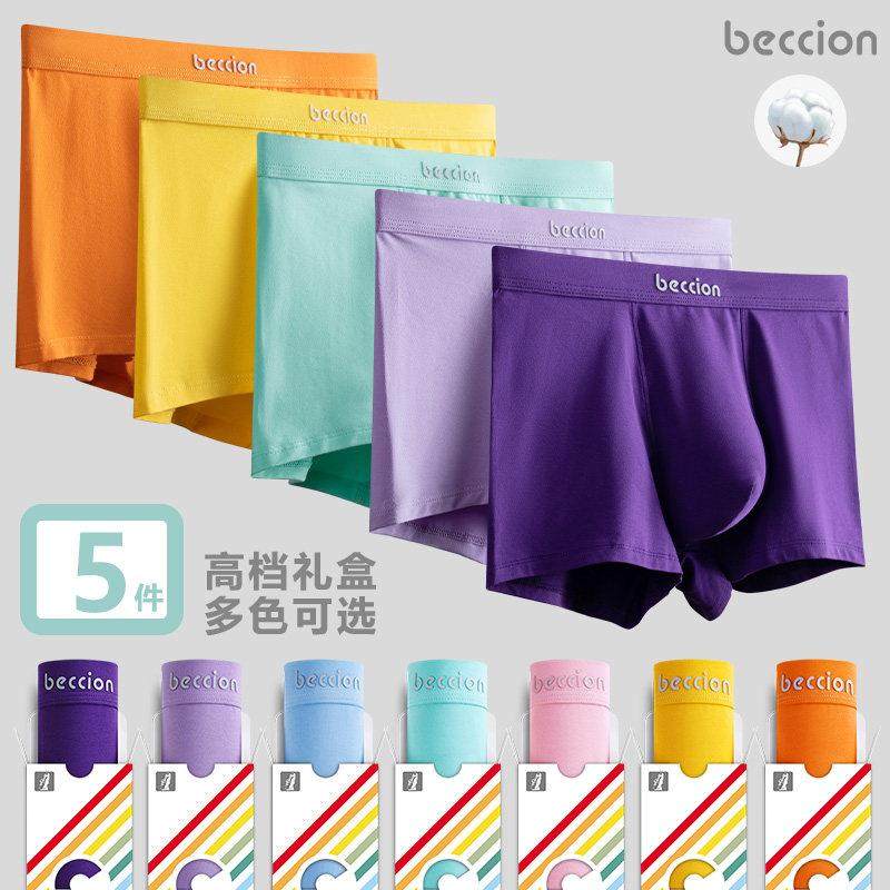 5件纯棉男士内裤平角裤彩色大码透气裤头四角裤男生可爱男友礼物