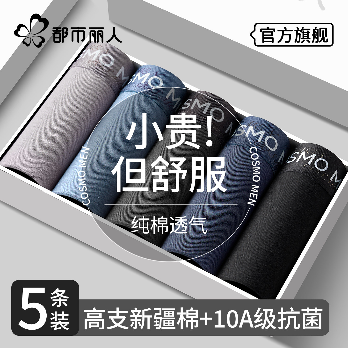 都市丽人男士内裤纯棉男生四角2026新款正品高档抗菌男式平角短裤