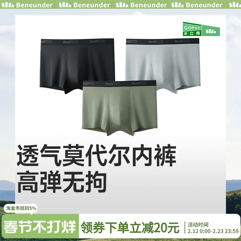 蕉下男士内裤2025新款冰丝莫代尔男生四角款青少年运动平角裤薄款