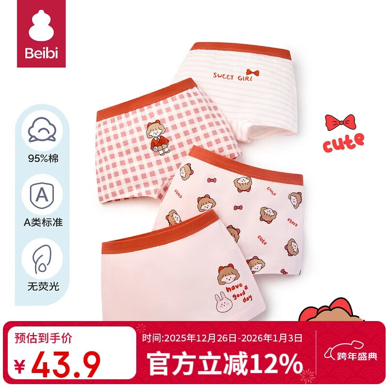 贝比儿童内裤女中大童A类平角纯棉婴儿不夹pp透气舒适四角短裤