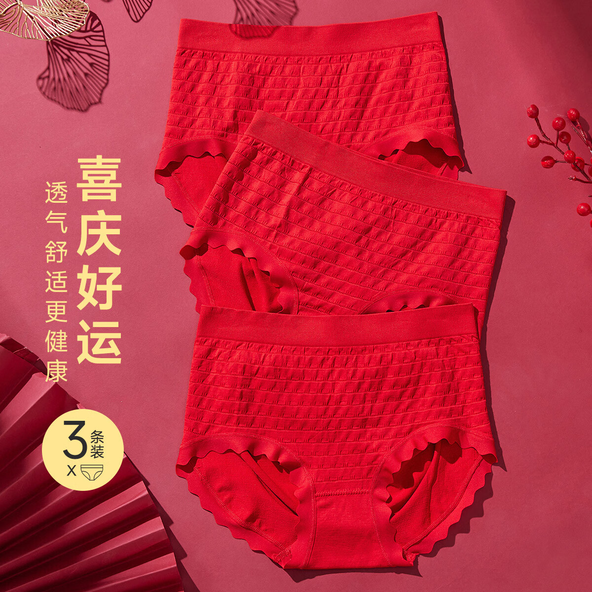 香蜜闺秀(GOSO)【本命年红内裤】3条装中腰无缝内裤女士三角内裤包臀高弹 大红(3条装) 均码