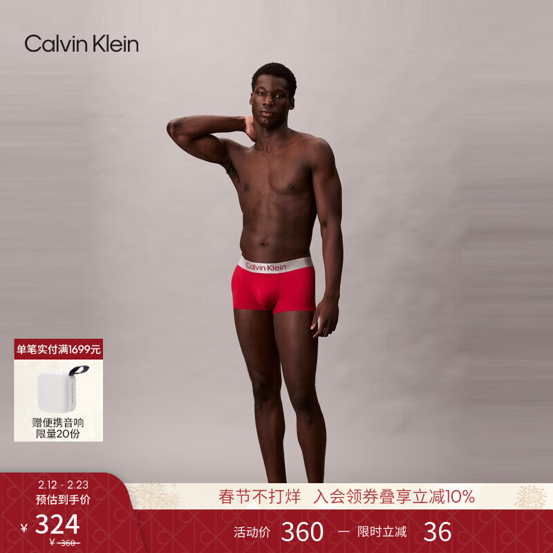 Calvin Klein内衣【情人节礼物炫光引力带】本命年新年红ck轻薄顺滑低腰内裤男 YU8-状元红 1条 L