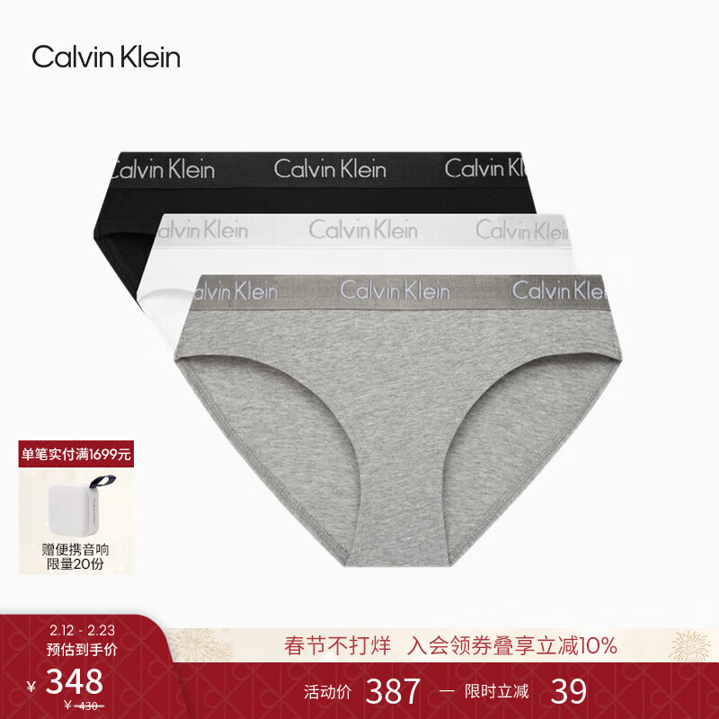 Calvin Klein内衣【情人节礼物】女士三条装提花腰边ck棉质微弹性感三角内裤女 MP1-太空黑/椰青灰/月光白 3条 M 尺码偏大,建议拍小一码