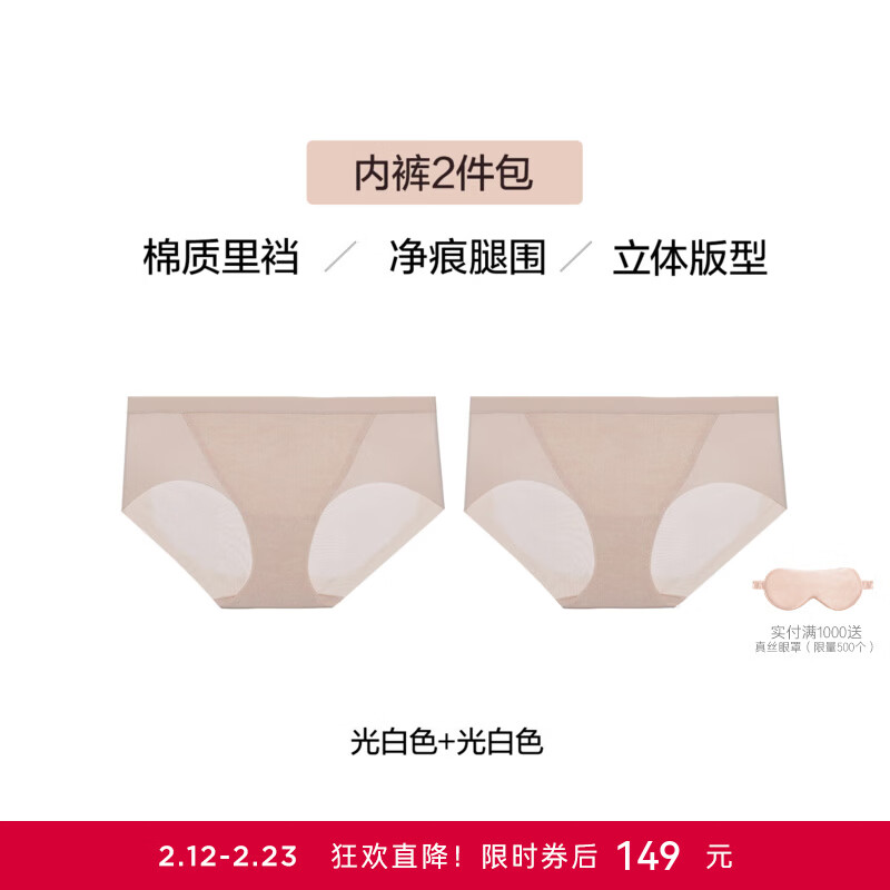 爱慕(Aimer)【2件包】爱慕织锦内裤女棉质底裆净痕腿围中腰平角裤AM2025038 鎏金+鎏金 1条 M 165