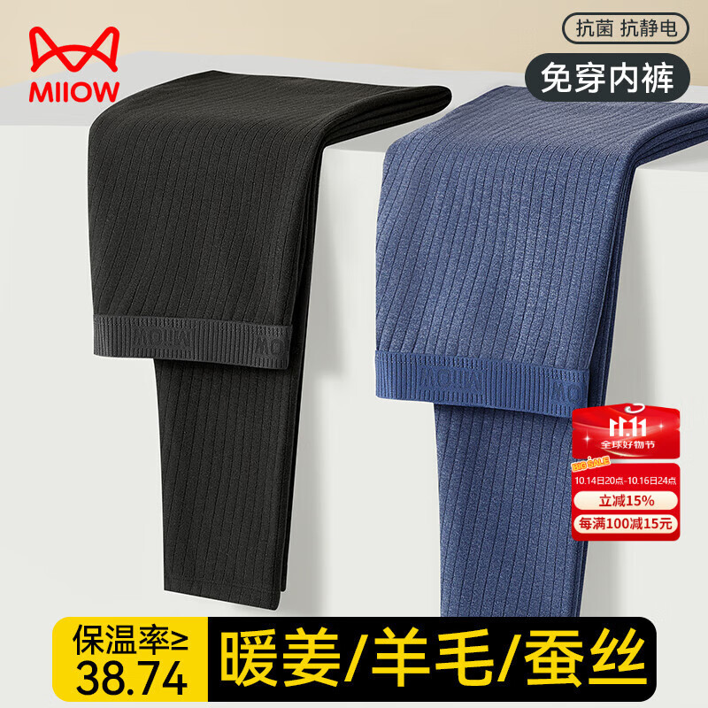 猫人【暖姜羊毛蚕丝】男士秋裤男免穿内裤打底裤大码衬裤抑菌加厚线裤