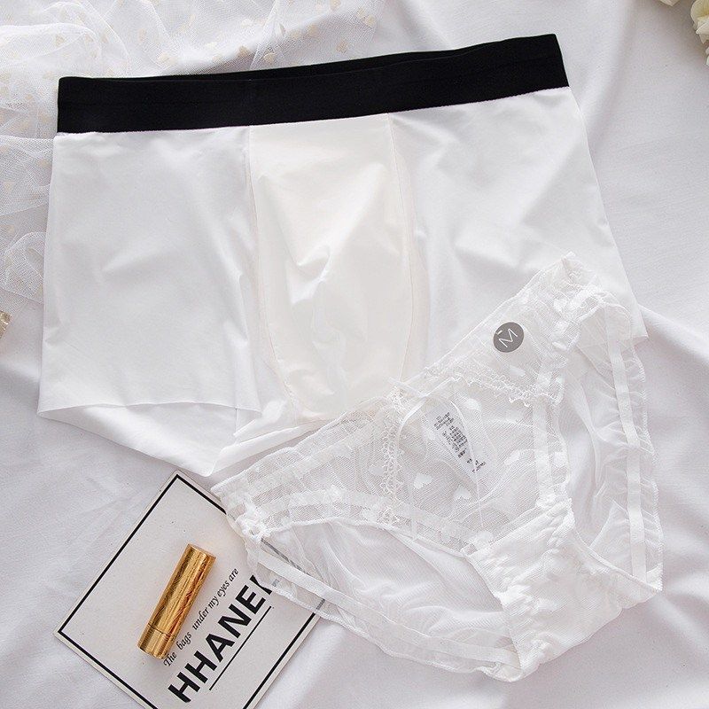 情侣内裤冰丝蕾丝男女内裤网纱一片式全棉裆夏季冰丝内衣套装