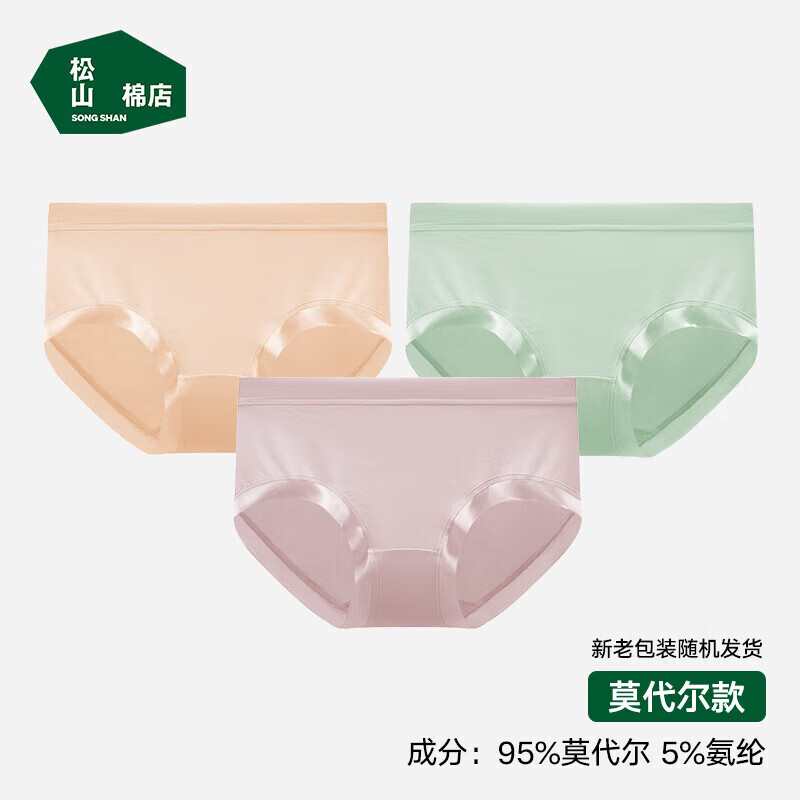 松山棉店兰精莫代尔中腰女士内裤5A抑菌弹力透气贴合不夹臀三角裤【3条装 【莫代尔】浅绿+肤色+深粉 3条 L (推荐110-125斤)