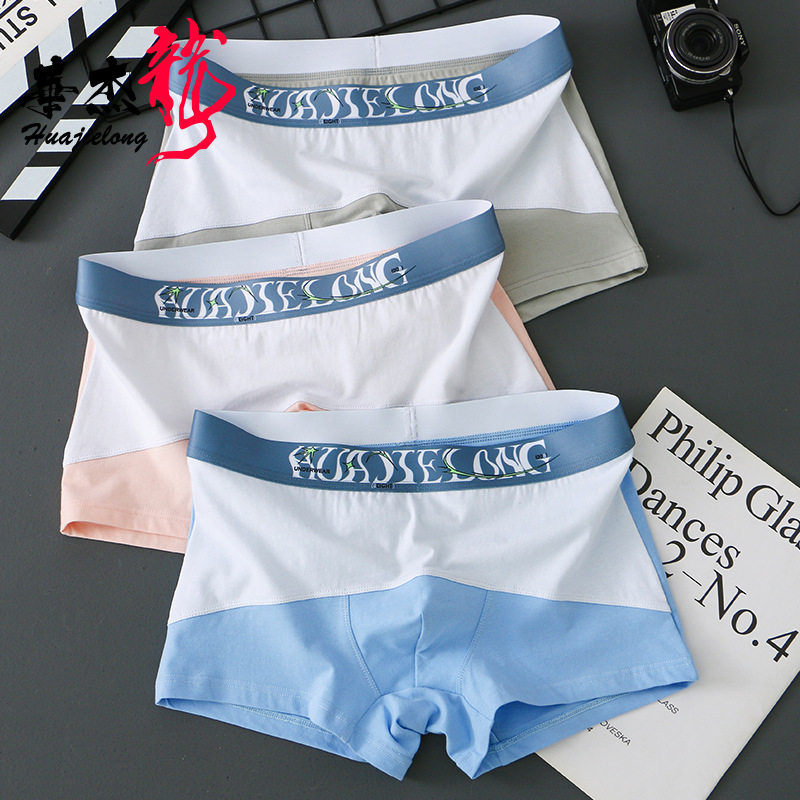 新款华杰龙拼色男士内裤修身男平角裤棉简约潮男生大码平角裤衩子