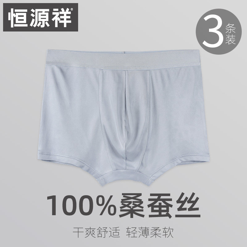 恒源祥桑蚕丝内裤男士平角薄款春秋速干零感清凉透气真丝四角裤头
