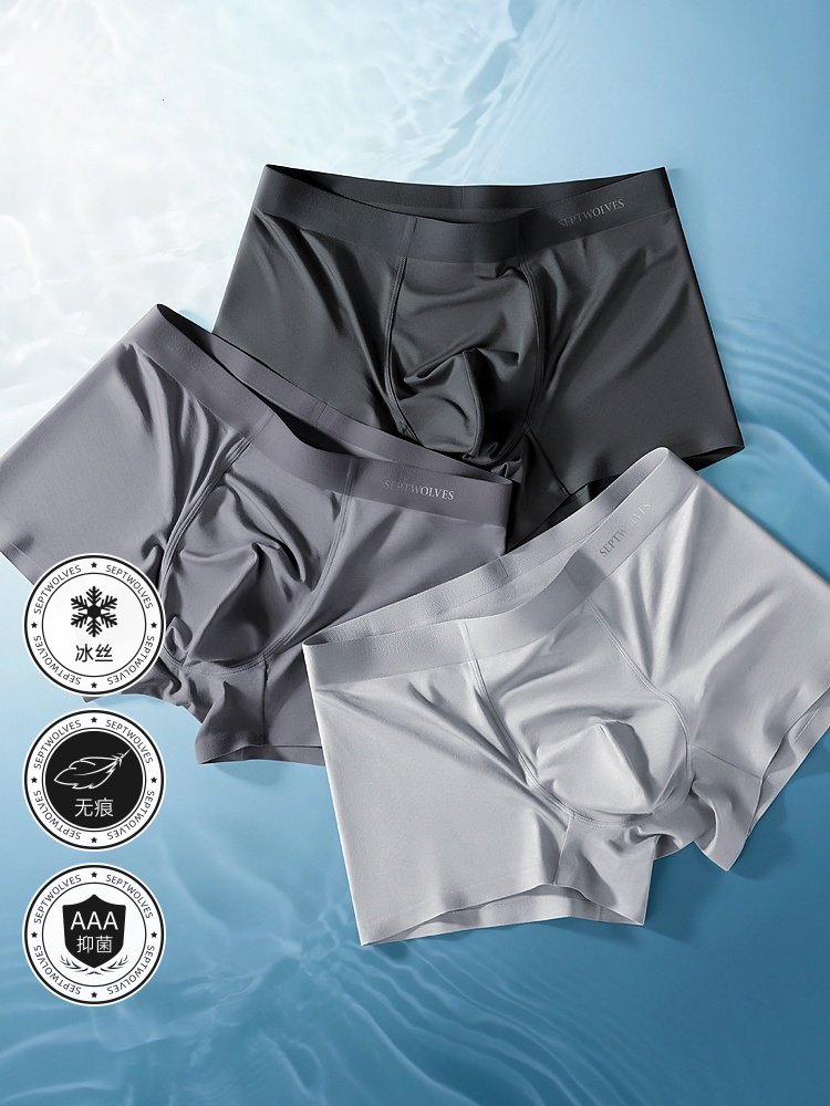 冰丝男士内裤无痕隐形不卡裆透气凉感抗菌底档夏季薄款四角短裤衩
