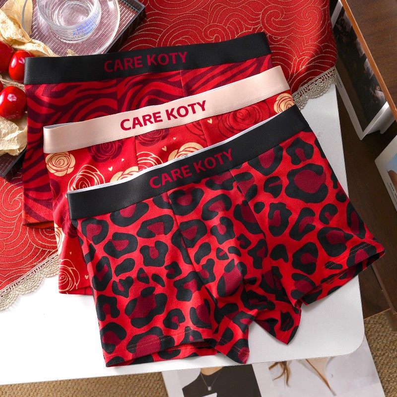 红色浪漫~豹纹精梳棉红色内裤男本命年性感2025属蛇新年送礼平角
