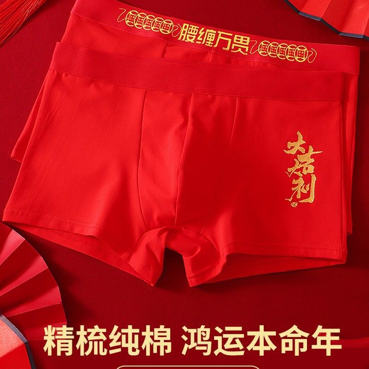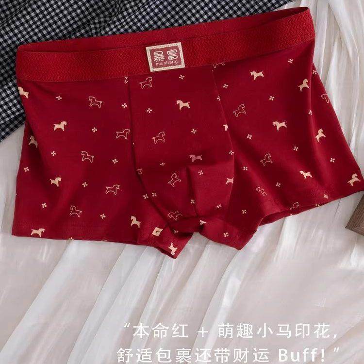 马年男士内裤本命年红色平角短裤生肖马大红男四角裤男生新年礼物