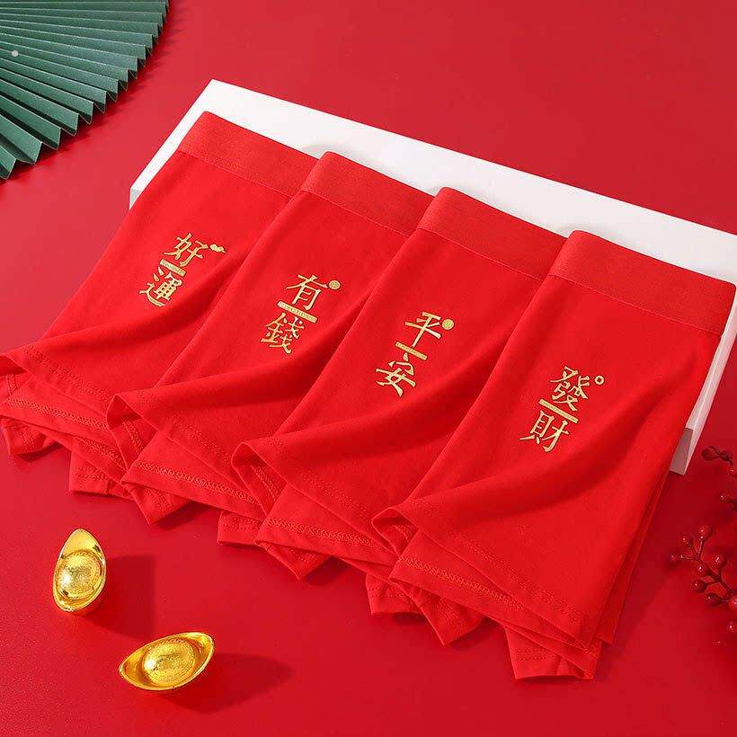 新款本命红内裤男士抗菌纯棉透气平角裤四角大码短裤头红色内裤男
