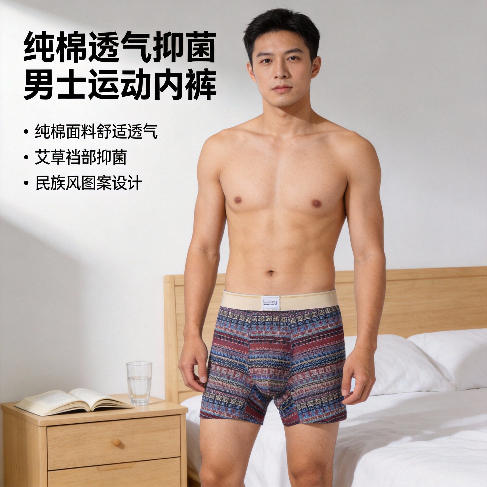 纯棉男士运动潮流内裤透气10A抑菌平角裤男中腰半无痕四角短裤头