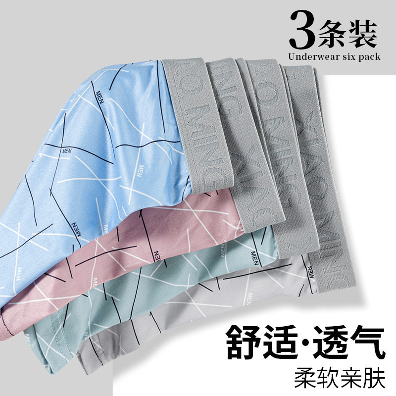 优质3条装纯棉男士内裤男款高档平角内裤潮流男生四角短裤衩