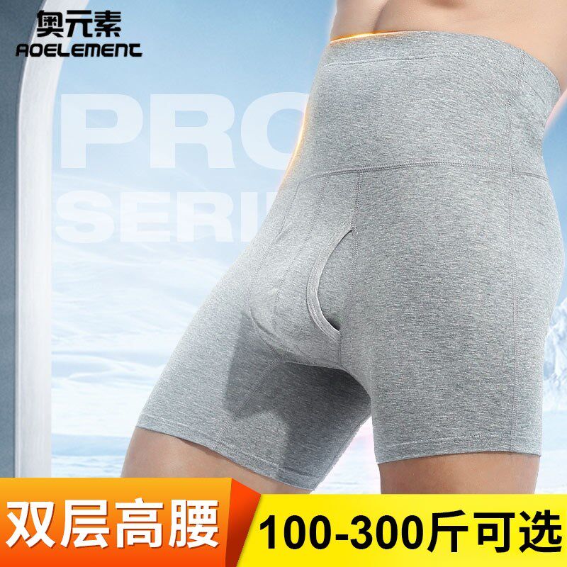 男士内裤男纯棉高腰收腹大码加长加大防磨腿加肥保暖运动平角裤头