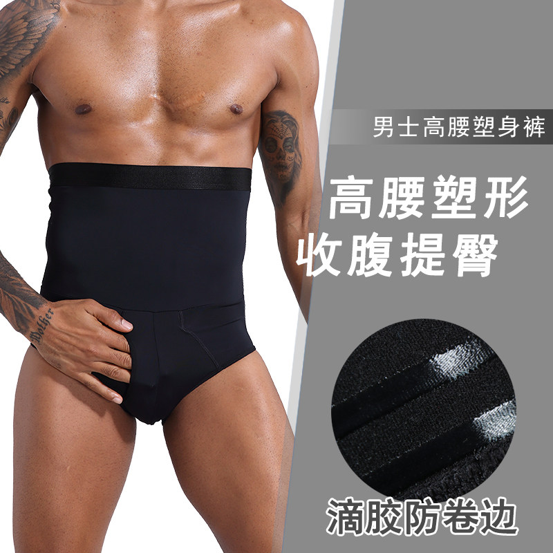 男士高腰收腹塑身内裤收赘肉提臀平角裤黑色塑形裤头
