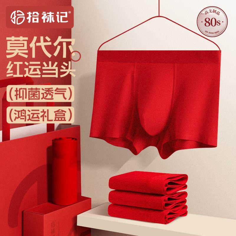 本命年男士内裤大红色结婚礼盒秋冬无痕大码透气平角短裤