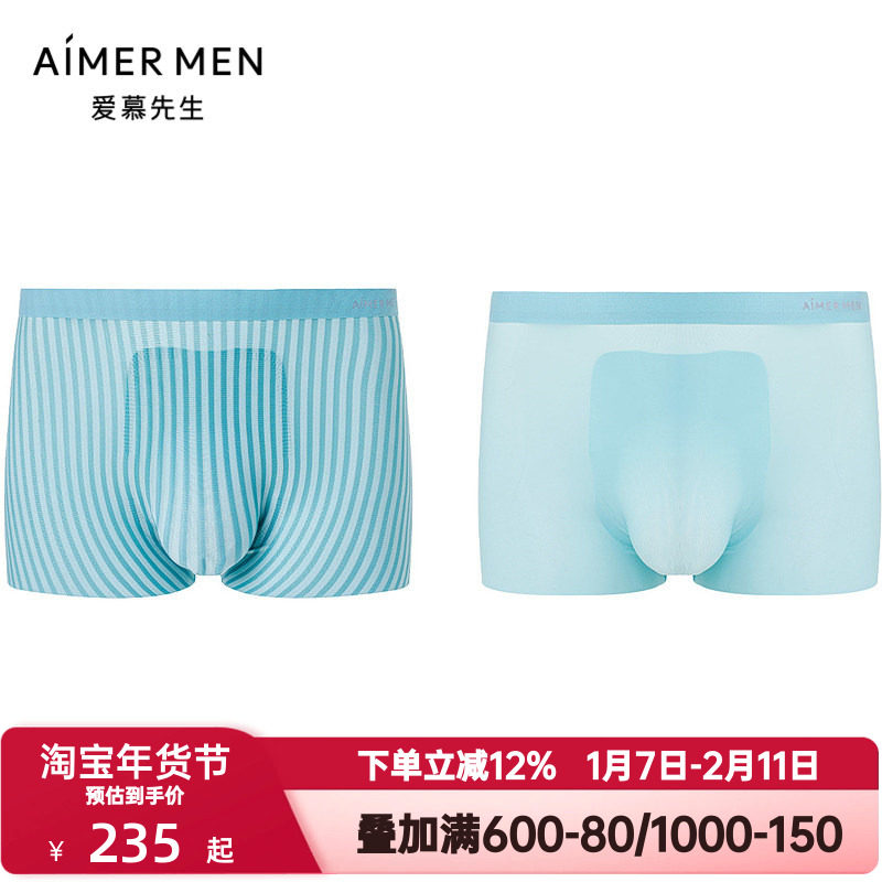 2条装 爱慕先生冰盒时代系列内裤男士舒适净痕装腰平角裤NS23L251
