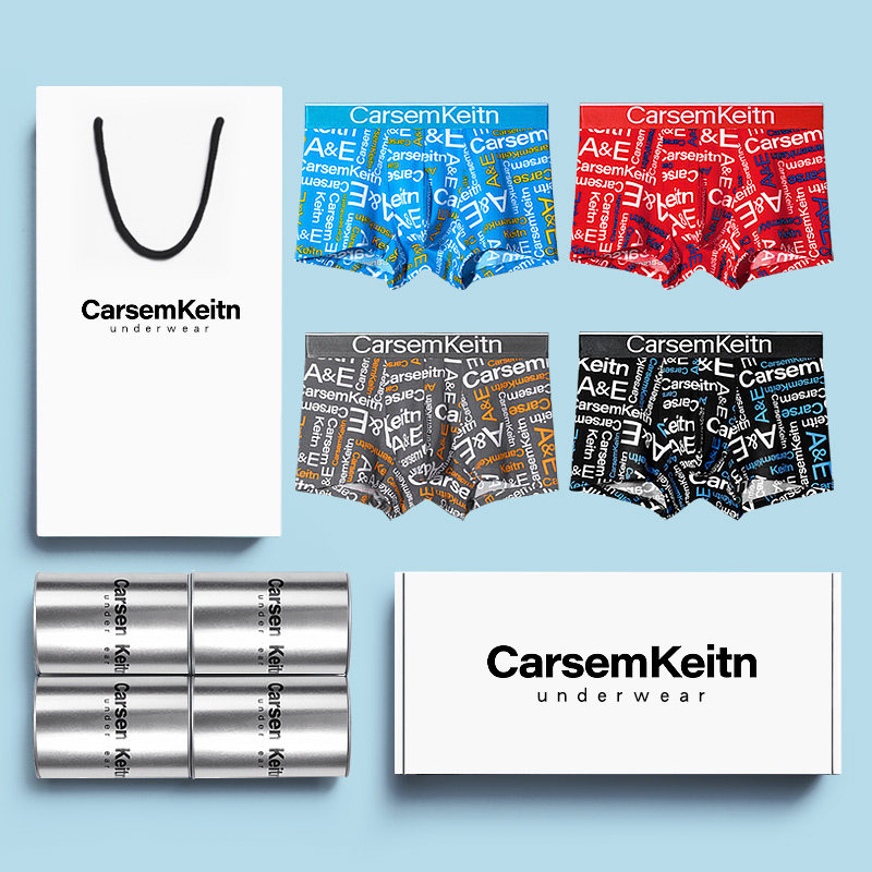 ck男士平角内裤蛇年大红色本命年纯棉抗菌透气四角短裤新款礼盒装