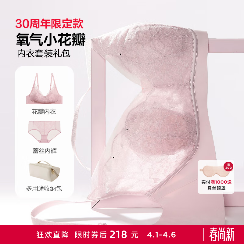 爱慕(Aimer)【氧气小花瓣】红色本命年内衣礼盒无钢圈聚拢蕾丝内裤文胸套装 桃知 S (160) 70ABC/75ABC