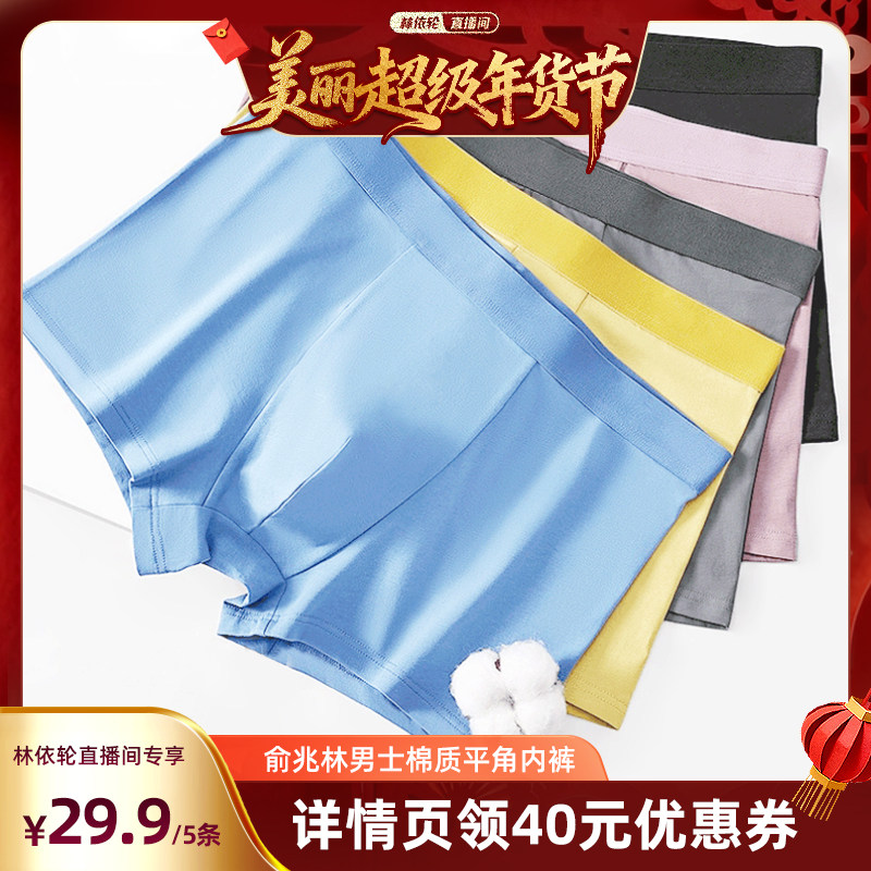 [林依轮直播间]俞兆林男士棉质平角内裤透气四角短裤