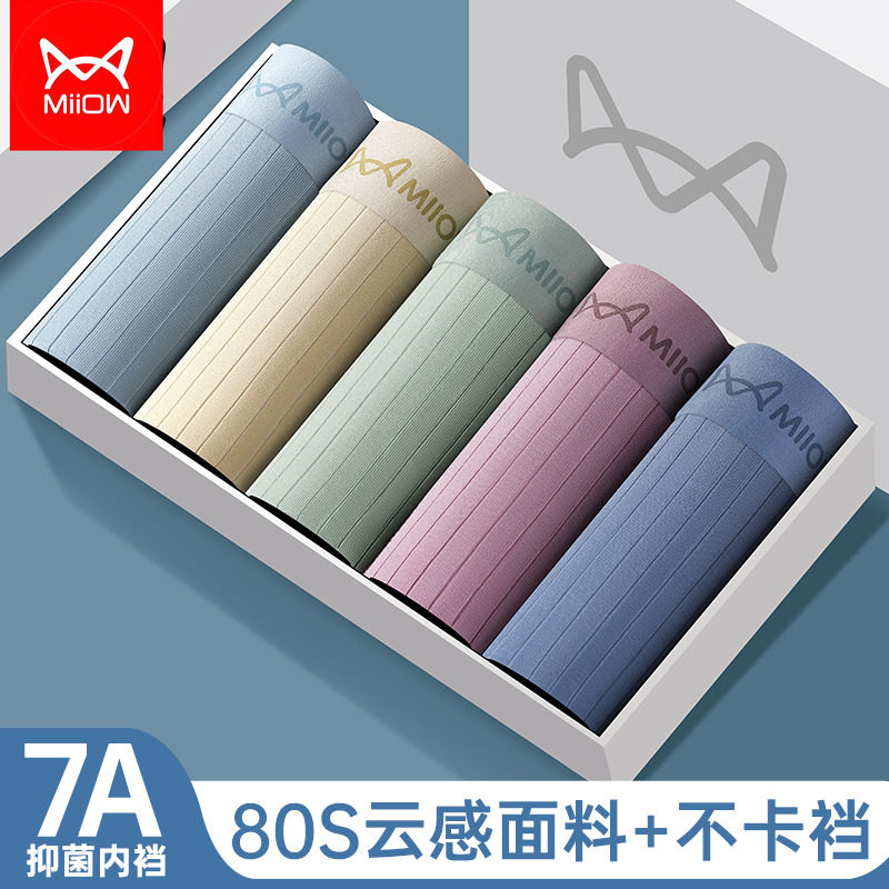 898#Cookiekoala小灰盒无感纯棉无痕男士内裤舒适中腰纯色平角裤