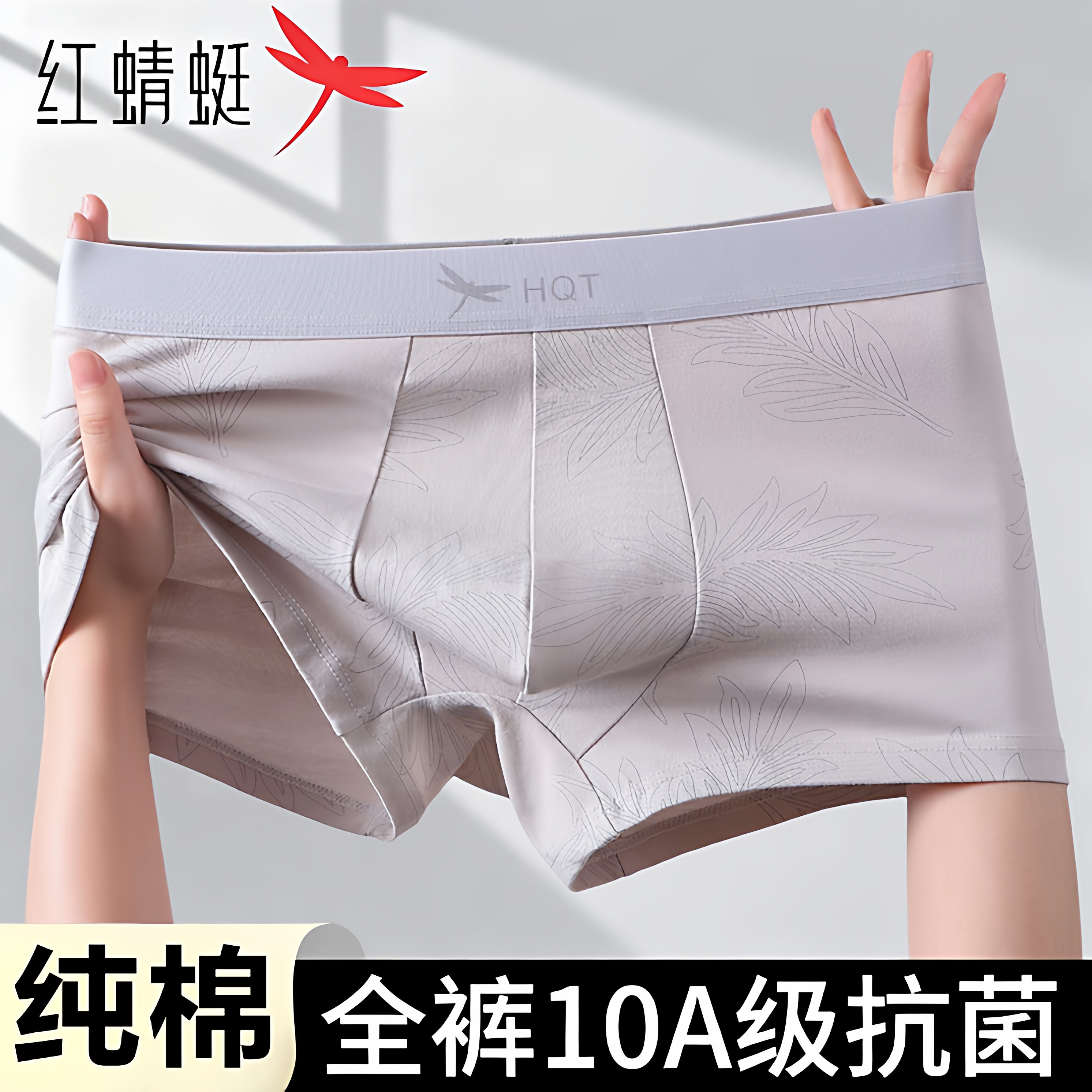 红蜻蜓纯棉内裤男士2026新款透气中腰10A抗菌桑蚕丝档大码四角裤