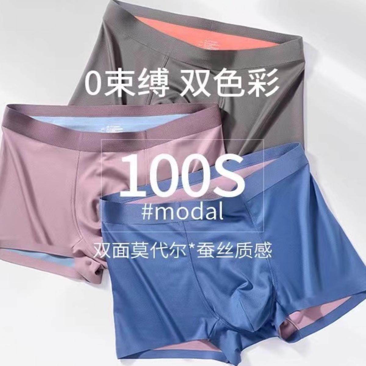 2024秋双面裸感男士内裤莫代尔双面颜色无痕抑菌平角裤头三条盒装