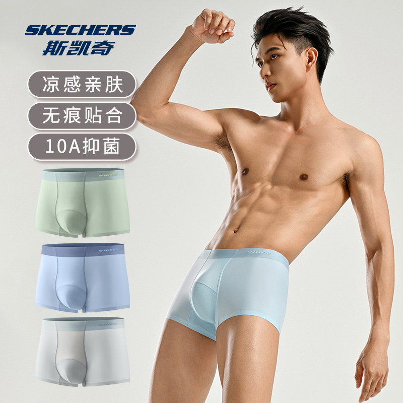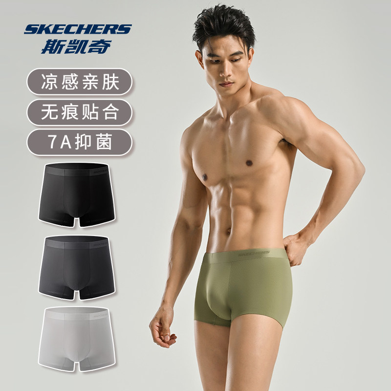 斯凯奇男士冰丝内裤夏季新款男生7A抗菌平角裤网孔透气棉裆四角裤