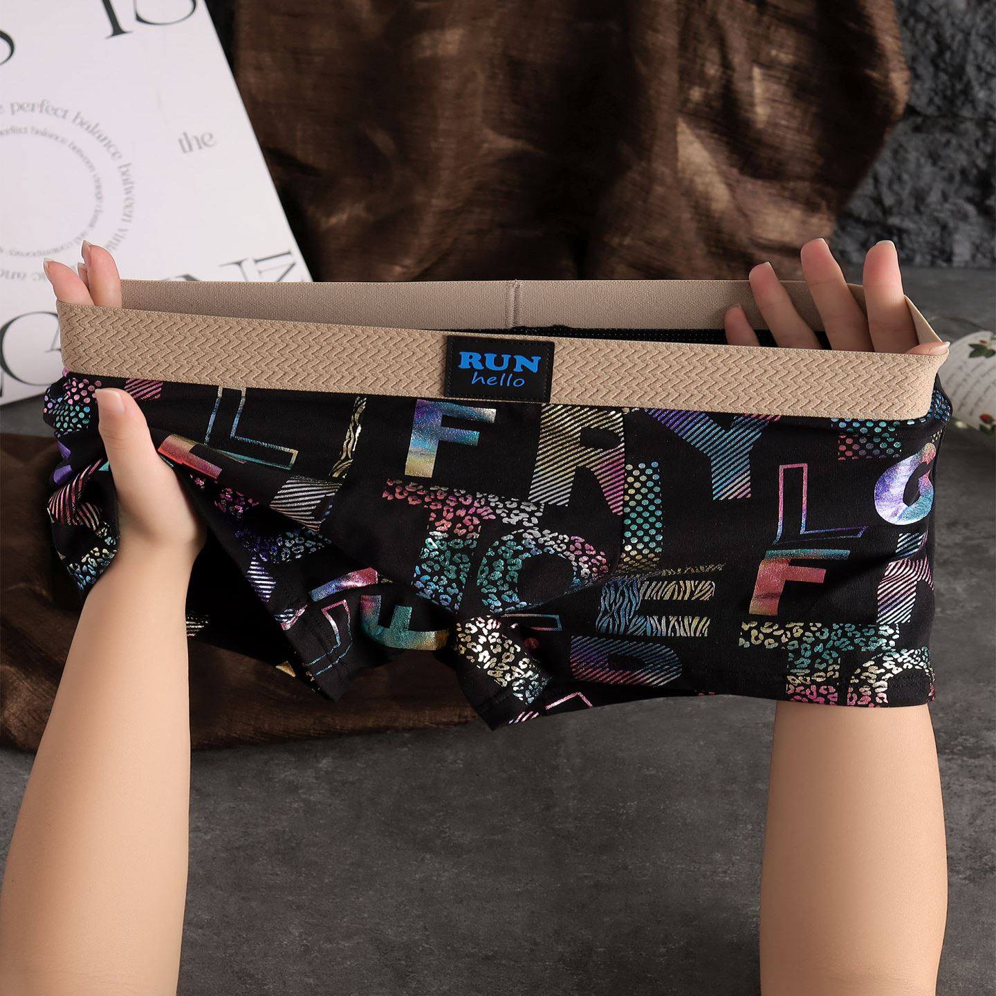 纯棉新款创意字母印花男士内裤男生透气平角裤时尚爆款四角短裤头