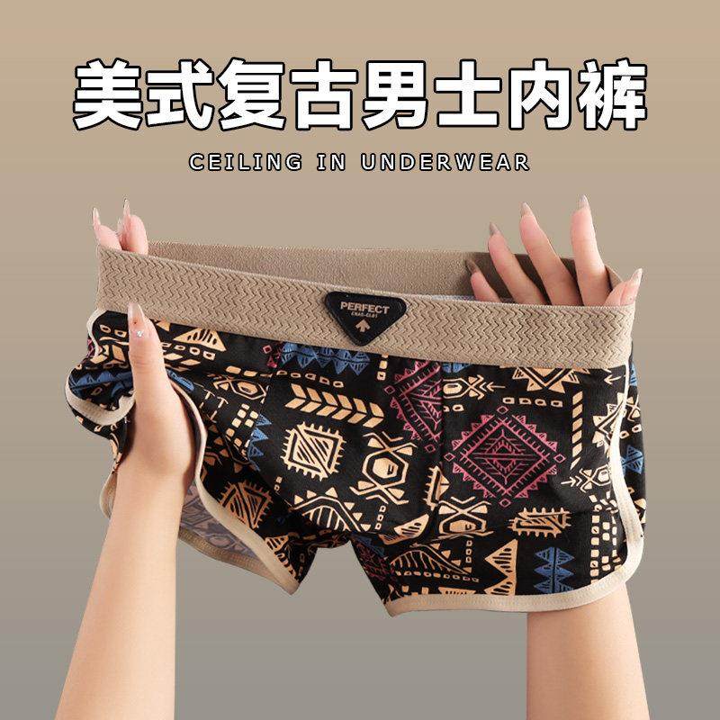 美式覆古民族风男士内裤新款男生舒适运动四角裤男式青年透气短裤
