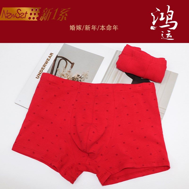 新1系红色内裤男新款鸿运平角裤本命年结婚中高腰内裤2条装55272