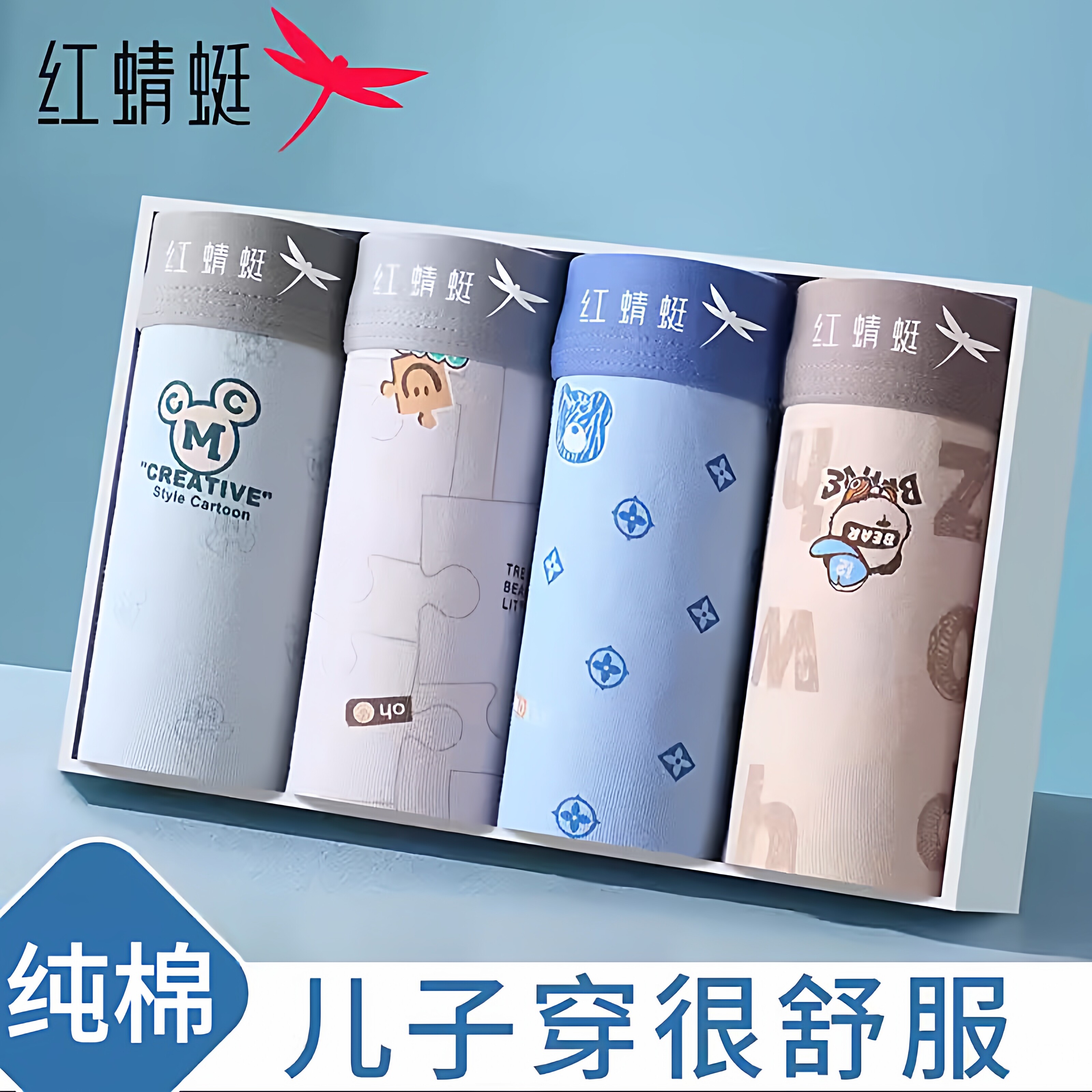 红蜻蜓青少年内裤男孩纯棉初高中学生发育期抗菌新款平角短裤头