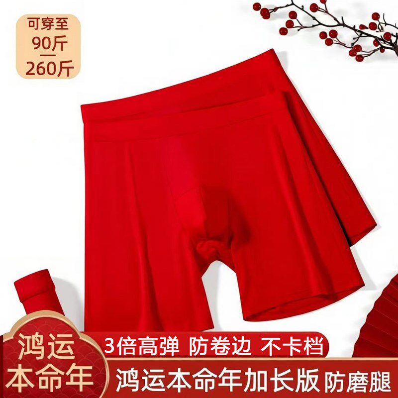 男士防磨腿运动内裤大码红色平四角短裤头本命年加长款高弹透气