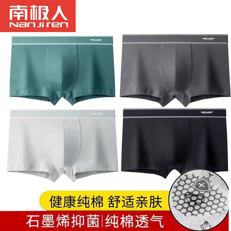 南极人棉内裤纯色透气男士平角裤中腰高弹运动舒适内裤包