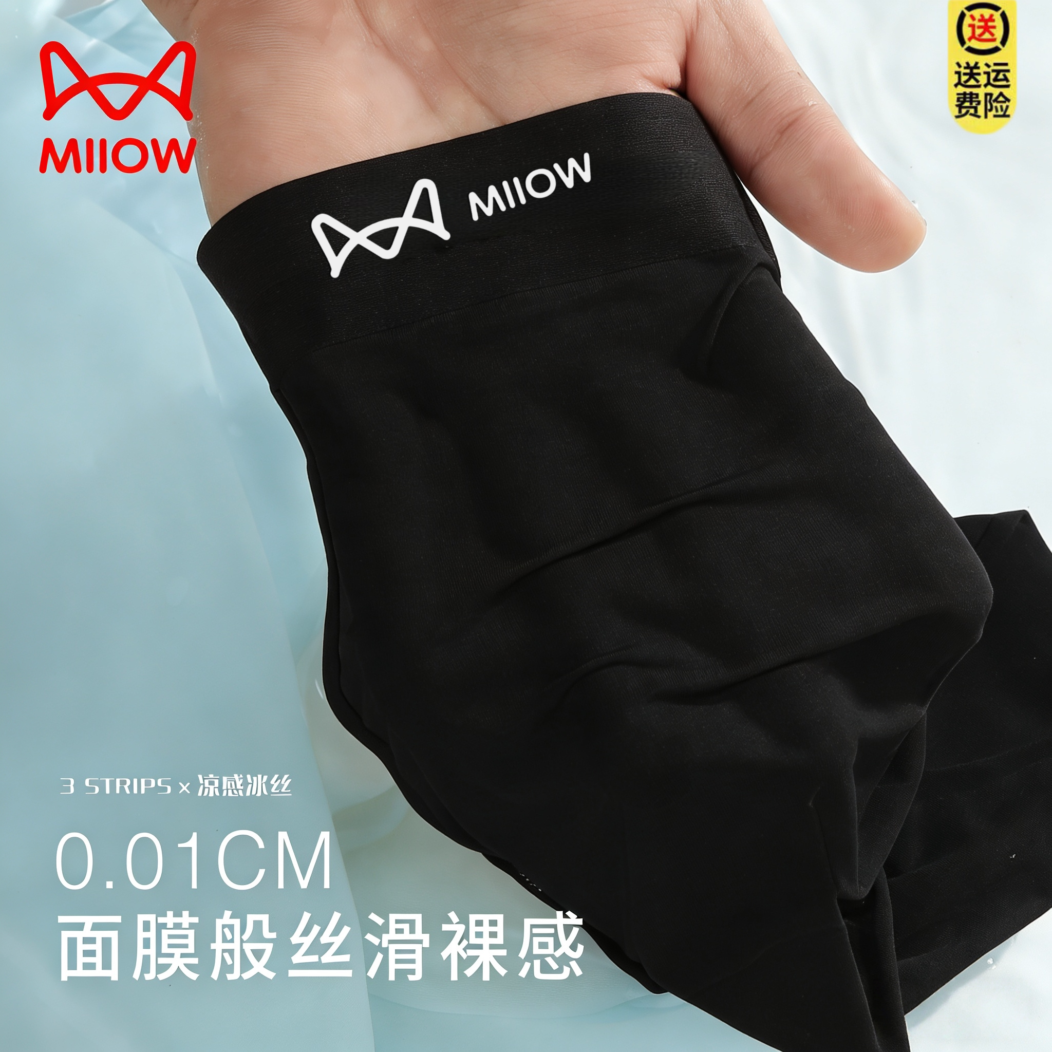猫人男士内裤冰丝无痕夏季薄款黑色平角抗菌透气宽松大码四角短裤