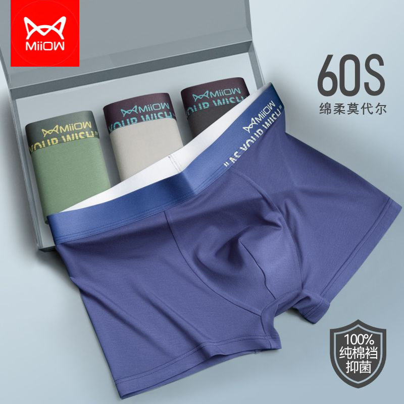 猫人60支莫代尔男士内裤冰丝感四角纯棉裆大码抗菌透气平角短裤头