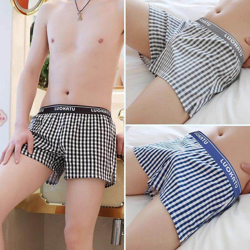 青年男士内裤四角条纹纯棉面料夏季舒适透气裤衩新款学生平角裤头