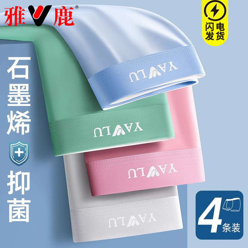 雅鹿男士内裤冰丝四角裤2025新款男生抗菌无痕男款夏季薄款平角裤
