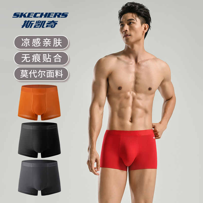 斯凯奇官方正品男士内裤夏季薄款冰丝男生四角裤新款裤衩平角裤