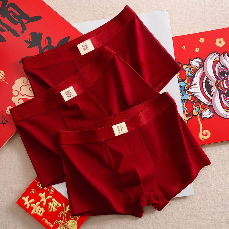 男士本命年大红内裤精梳棉发财裤平角四角裤结婚喜庆红