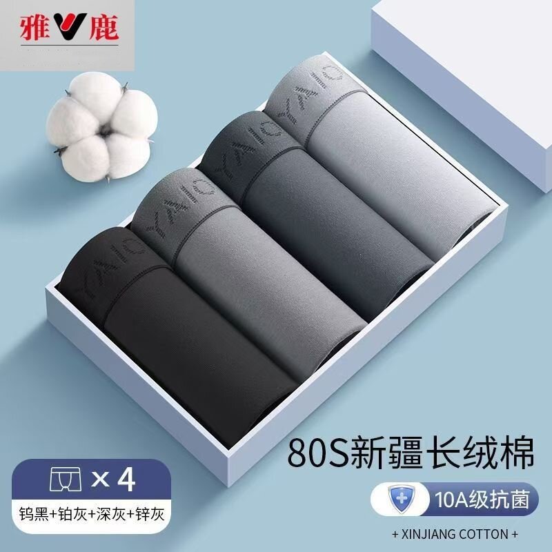 雅鹿纯棉男士内裤抑菌抗菌薄款短裤青少年男生四角裤宽松透气防磨