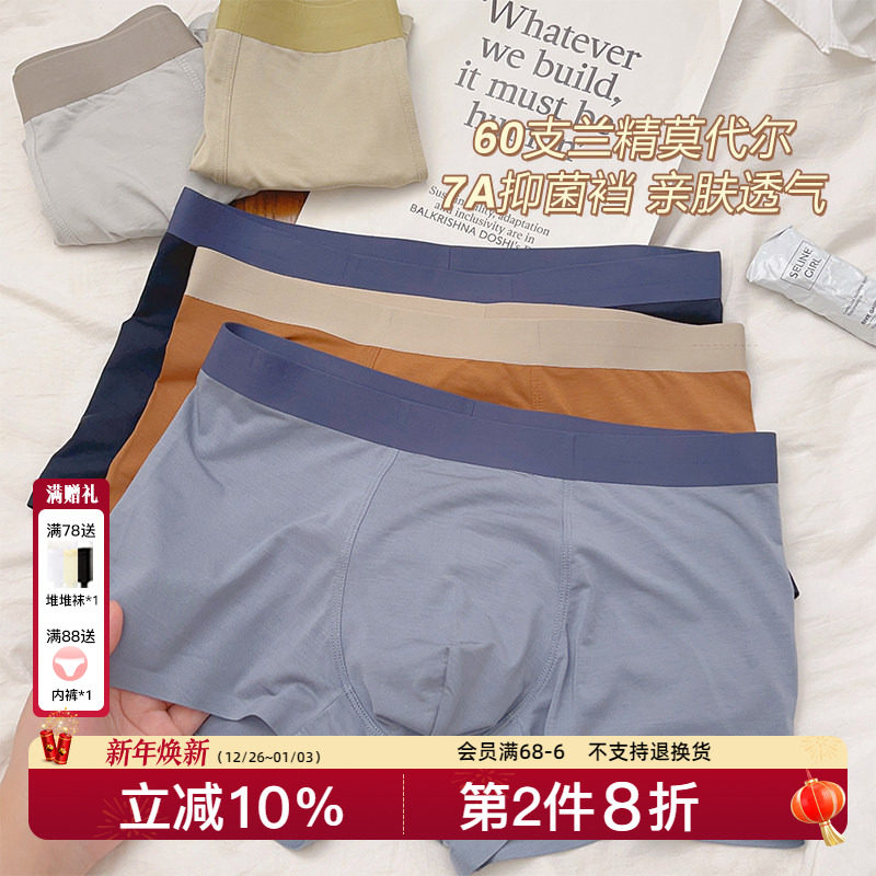 商务兰精 | 60支莫代尔男士内裤7A抑菌平角裤秋季青年男四角短裤