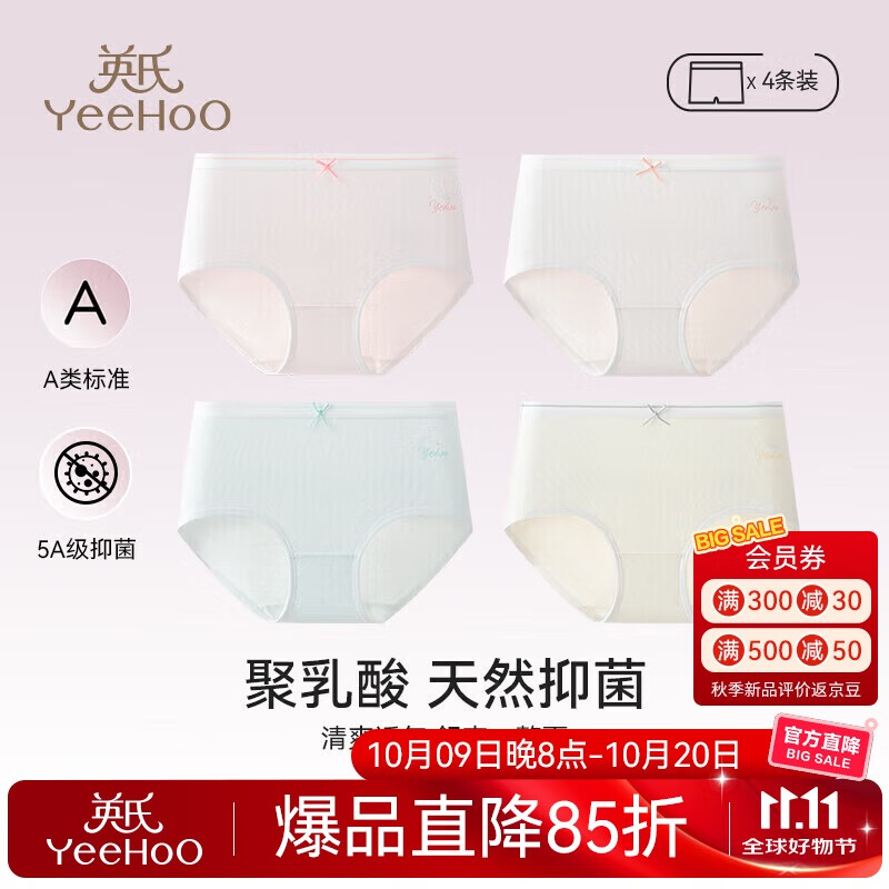 宜而爽100%纯棉花朵女士内裤7A抗菌新款透气三角提臀式底裤 黄小花+五角星+黄大花+粉色 L (95-120斤)
