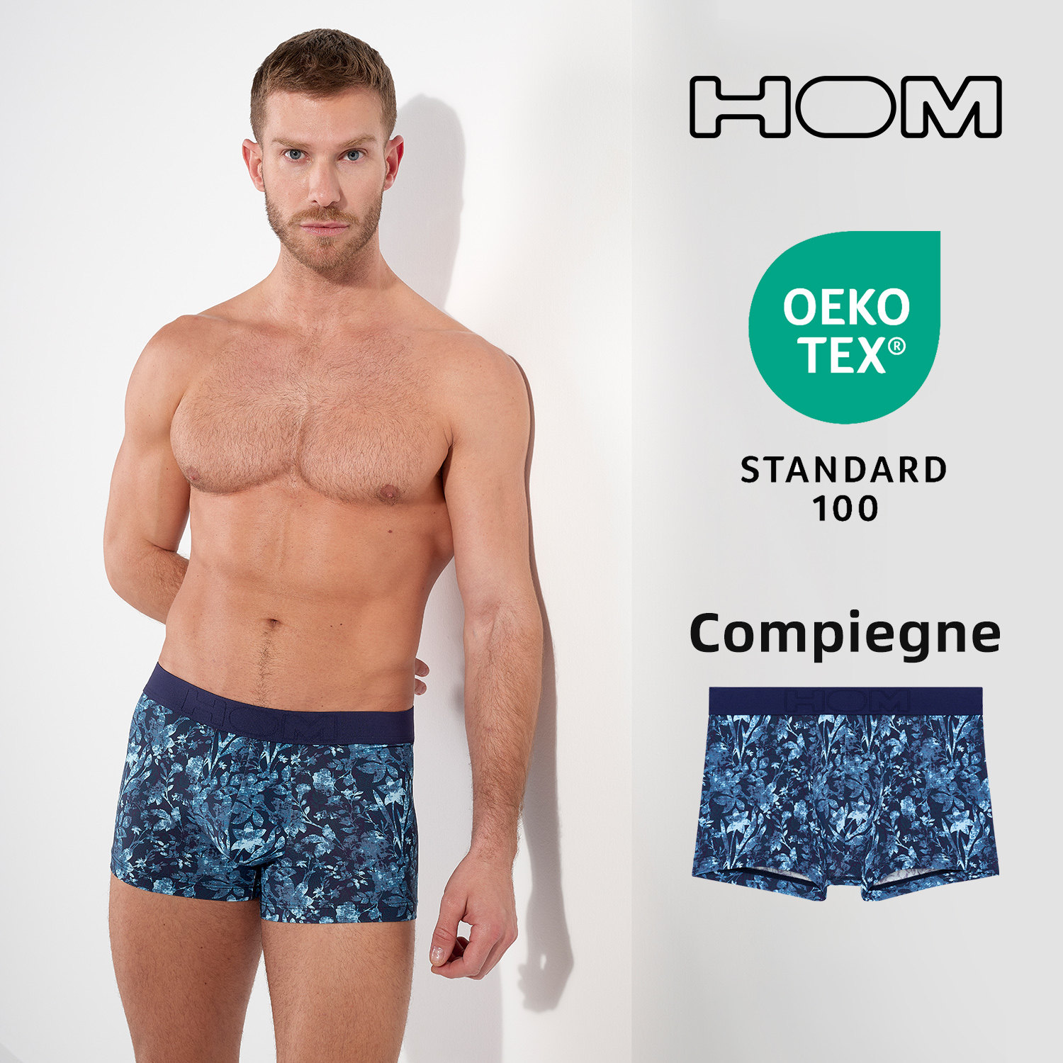 HOM法国男士印花丝滑薄款弹力透气平角内裤舒适亲肤不卡裆不卷边
