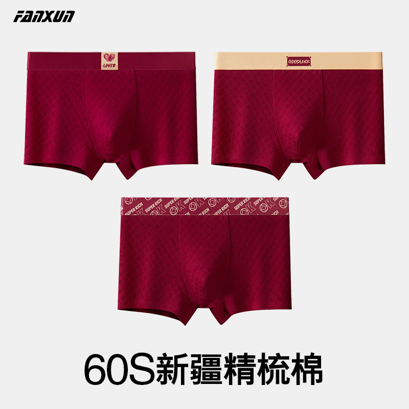 10A抑菌男士内裤纯棉本命年红色男款四角短裤结婚大红男平角裤头