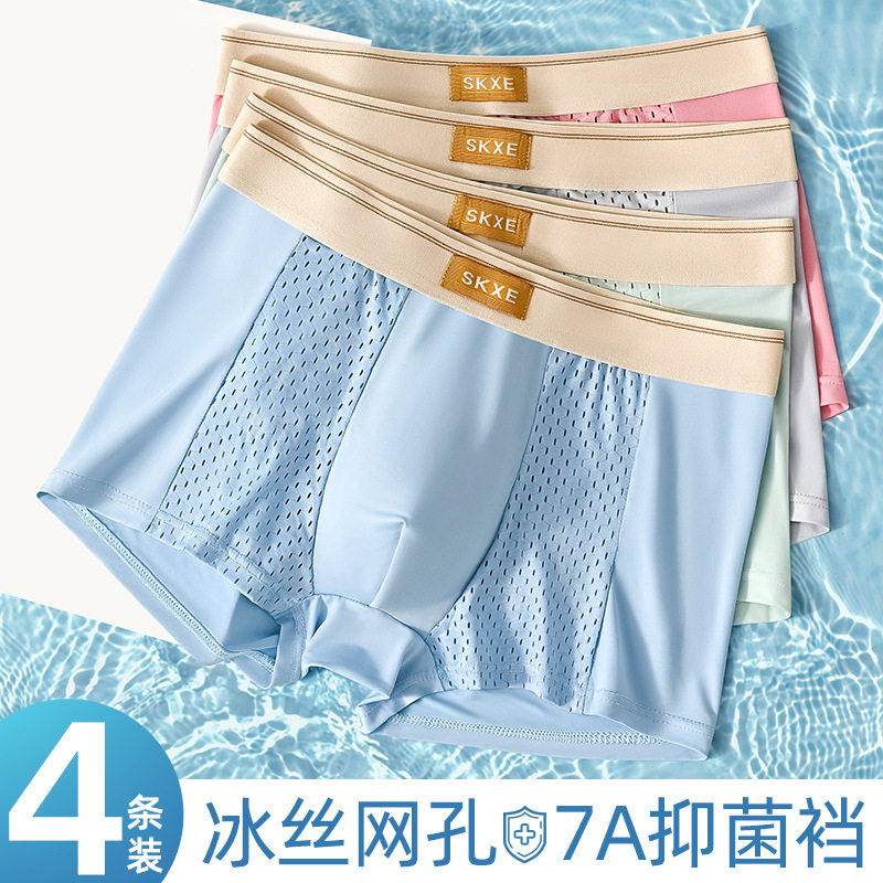 众将男士冰丝平角内裤春夏季透气舒适底裤无痕字母款四角裤男裤衩