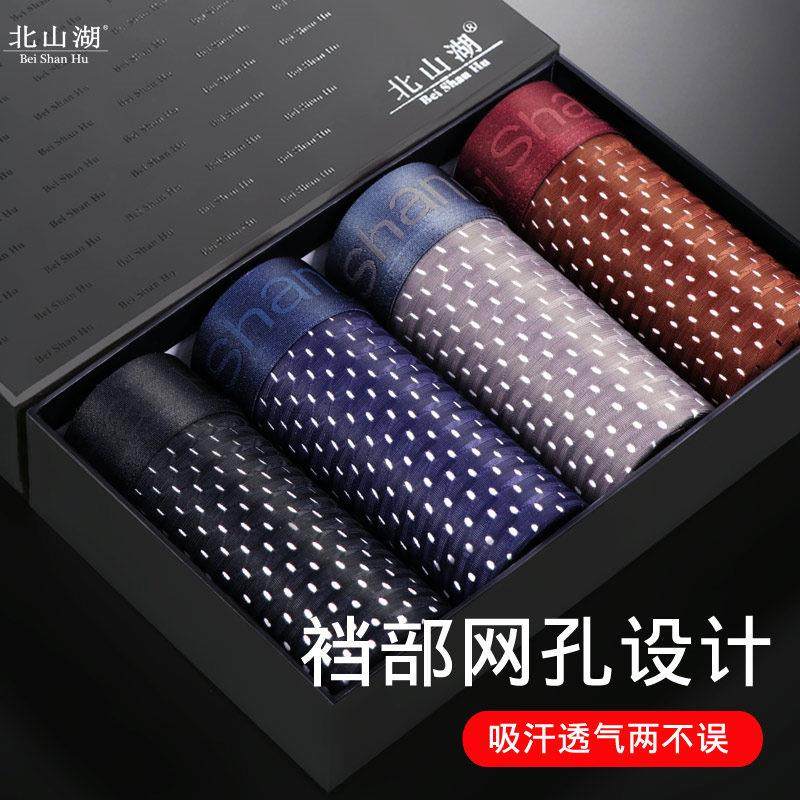 男士内裤冰丝平角裤网孔透气镂空加肥加大码胖子肥佬底裤男4条装