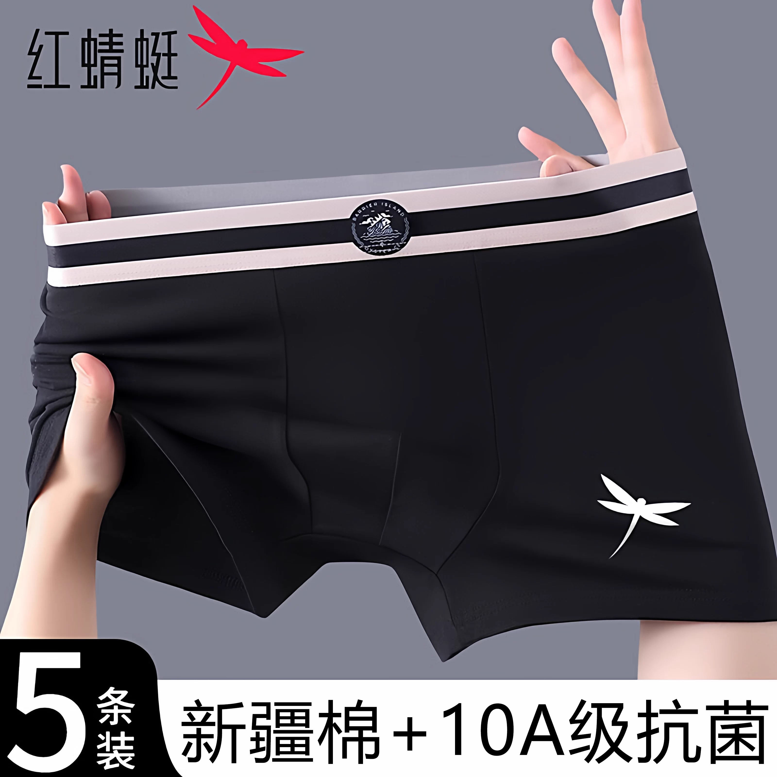 红蜻蜓纯棉抗菌男士内裤男大码舒适透气中腰运动潮流宽松四角短裤